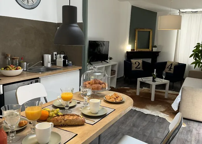 The spacious Cite 4 Maison Bacou includes a shared lounge and is situated around 5 minutes' walk from Chapeau Rouge Concert Hall. Wi-Fi and a car park are also available at this apartment.